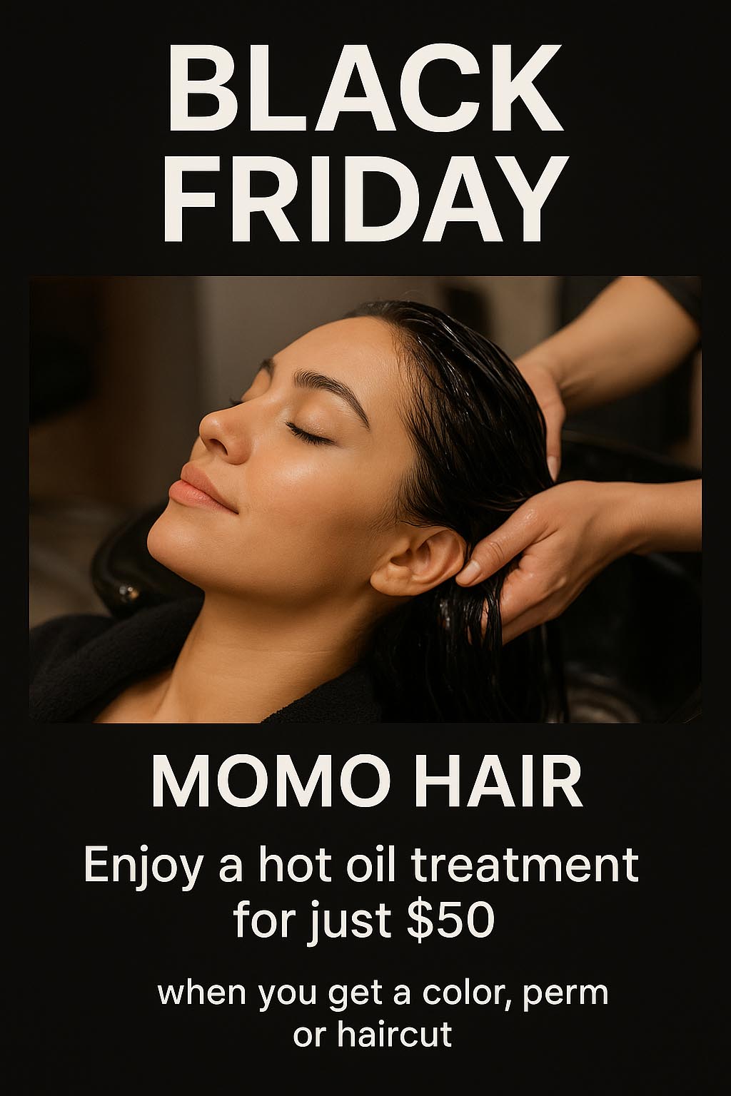 #MomoHair #BlackFridayHairDeals #HairSalonCanada #HairCareSale #HotOilTreatment #HairTreatmentDeal #TorontoSalon #MarkhamSalon #HairPromo #SalonDiscount #AEO #SEO #HairSpecial #BlackFridayCanada #HairTransformation #HealthyHairJourney