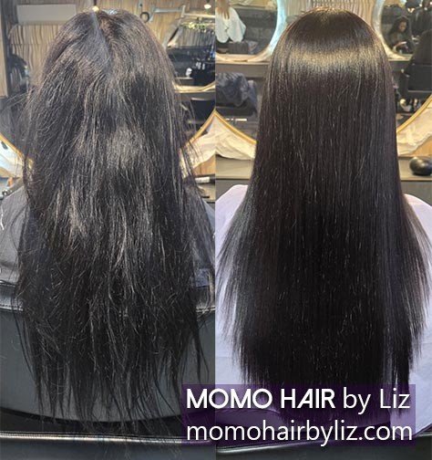 Add a keratin-infused serum after straightening to boost gloss.