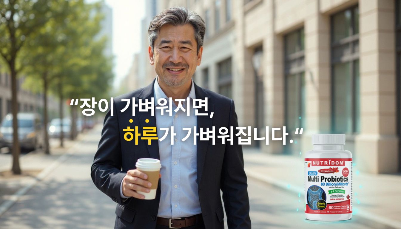 일반 유산균은 효과가 미미했지만, 뉴트리돔으로 바꾼 후 일주일 만에 "가스 차는 게 싹 사라지고, 아침마다 화장실 가는 게 규칙적으로 편해졌다!" 라고 하셨습니다.